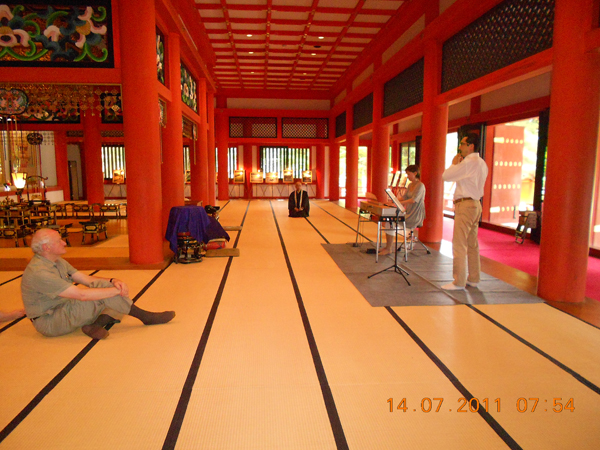 ▼世界遺産になったばかりの平泉視察(毛越寺でご奉納の演奏をいたしました!)