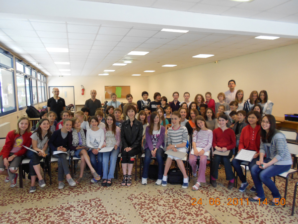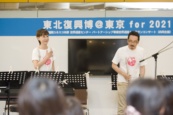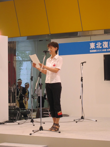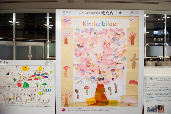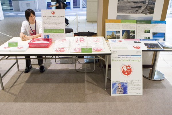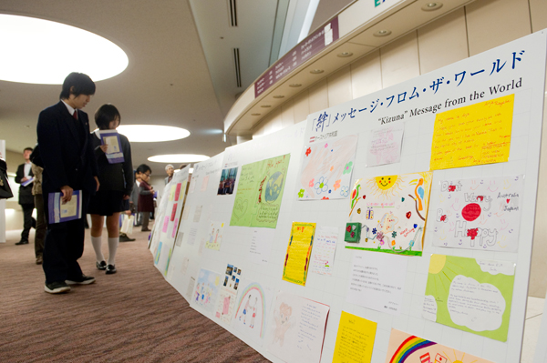 ▼東日本大震災被災地への絵とメッセージと鉛筆の授与式。