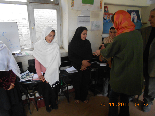 ▼NGOアフガニスタン デュマンの施設にて。子どもたちの作品を見せて頂きました。