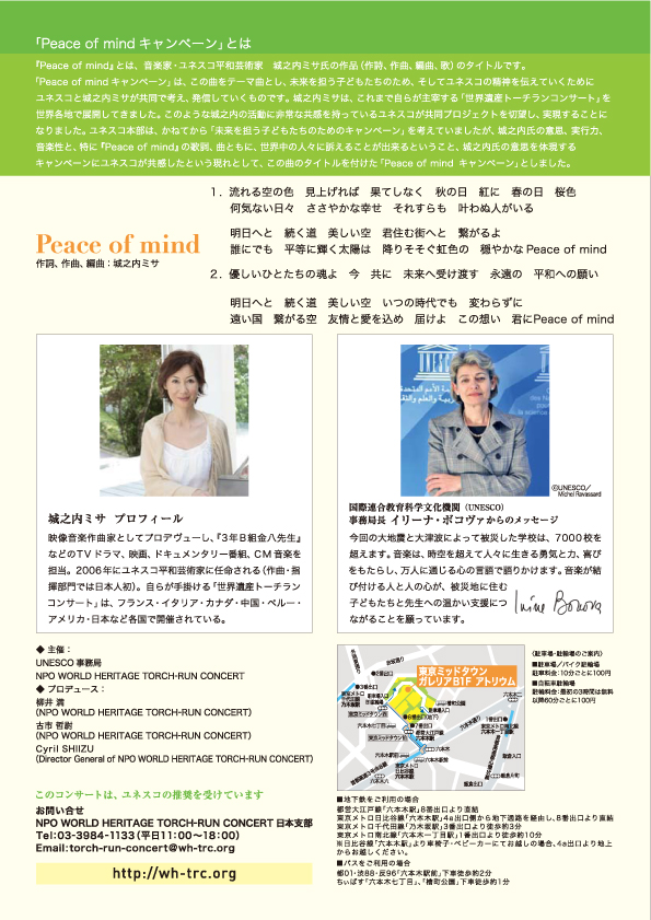 『ユネスコ本部パートナーシップ事業 世界遺産トーチランコンサート~Peace of mindキャンペーン』
