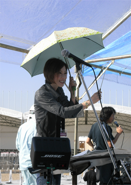 ピアノのひろちゃんの日傘を借りて指揮したところを撮ったのは、