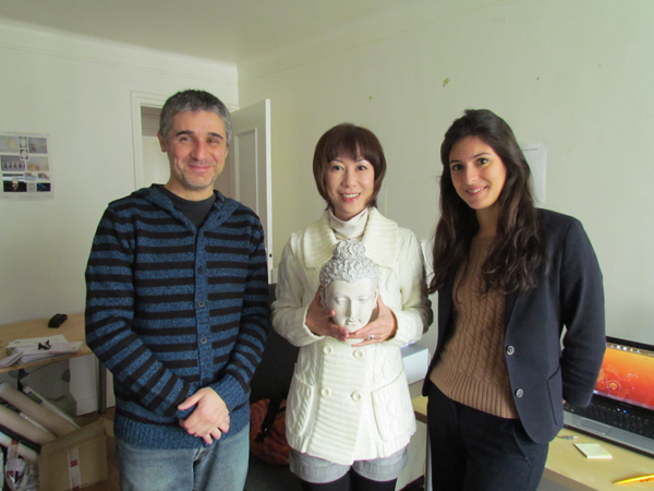 手にもっているのはパリのギメ美術館にある仏像の頭のレプリカ。