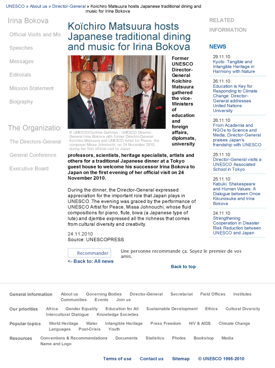 昨年11月24日に、ユネスコ事務局長のボコバさんが日本にいらして、